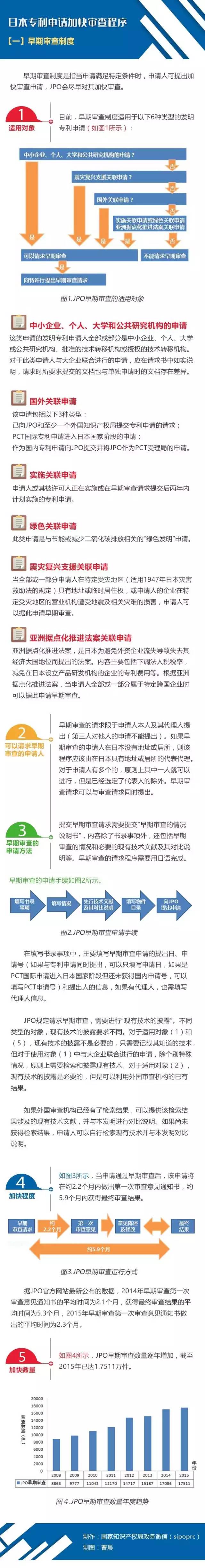一般而言,专利申请尽早获得审查有助于申请人更好地开展专利布局。但是,随着专利申请数量的快速增加,各国普遍存在专利审查周期过长而不能满足申请人保护发明创造需求的情况。近年来,日本特许厅(下称JPO)为解决该问题采取了一系列措施,JPO长官在2016年的新年致辞中提出计划创建“世界上速度最快、质量最高的审查制度”,加快审查制度就是其重要举措之一。本图解对JPO运行的加快审查程序进行介绍,以期为在日本提交专利申请的我国申请人提供参考。