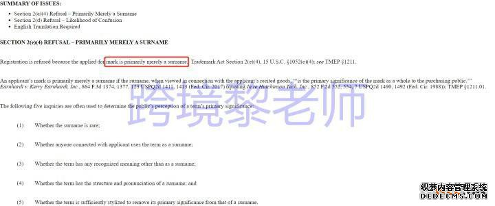 4、该商标是个人姓氏。