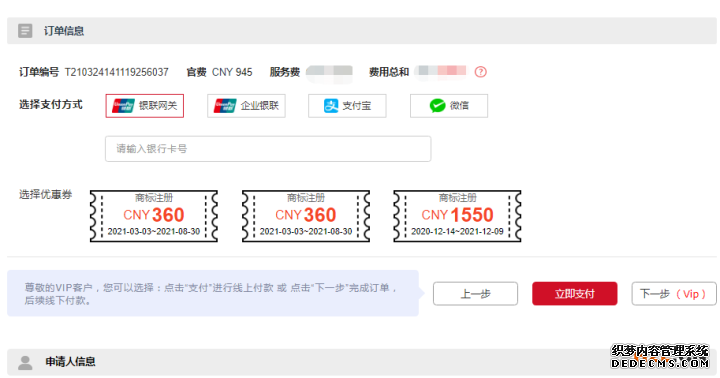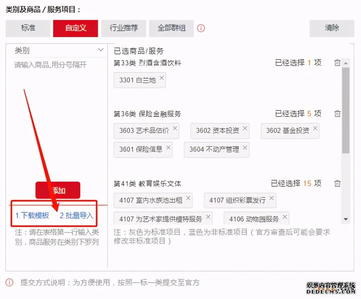 商标业务→商标注册(中国大陆商标注册/中国香港商标注册/海外商标注册/马德里商标注册)→填写商标信息