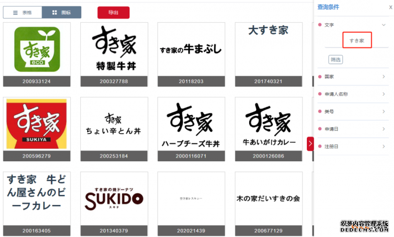康信IP平台「商标查询」功能还能够实现AI图形查询和中英日韩文字查询。