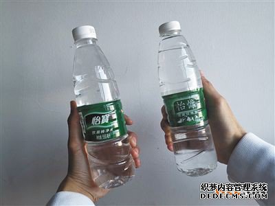 “怡慷”饮用水(右)与华润“怡宝”对比。新京报记者 王远征 摄