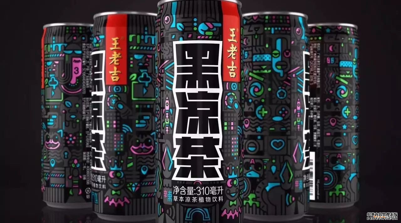 披露的这款包装与我们熟悉的王老吉红罐包装明显不同,其大胆采用了黑色作为主色调,同时在包装上还采用了大量图标,包括箭头、飞机、爱心等等88种插画元素加入,以电玩风格展现出了二次元调性,非常酷炫的一种感觉。这款黑凉茶与之前的红罐所针对的人群有所区别,这款黑色系列更偏向于年轻用户。